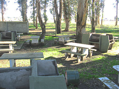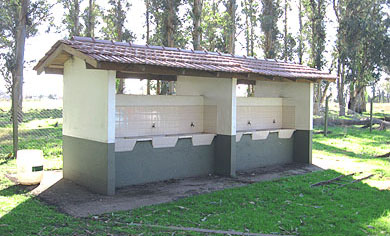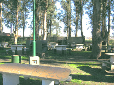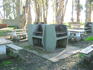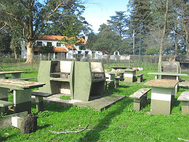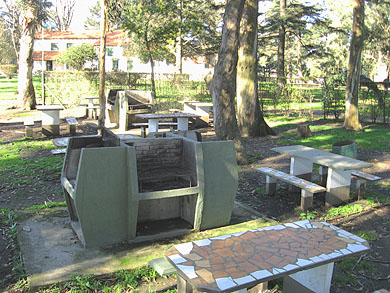 Parrillas con mesas y asientos